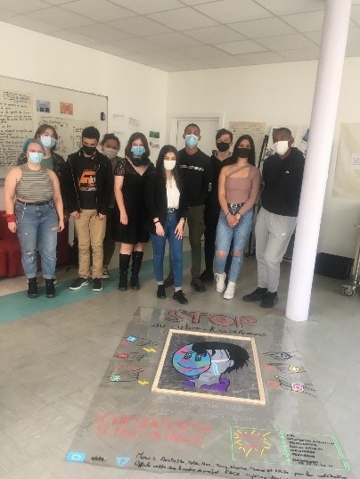 Les élèves du CVL, mais aussi ceux qui, touchés de près ou de loin par ce phénomène, souhaitaient témoigner, se sont ainsi rassemblés tous les lundis durant la pause méridienne, environ 6 mois durant. Un travail important autour du mot « harcèlement » et de la notion de projet a été effectué. A L’issue de ce travail, les élèves ont créé une affiche qui sera exposée au sein du lycée et présentée à un concours international.
