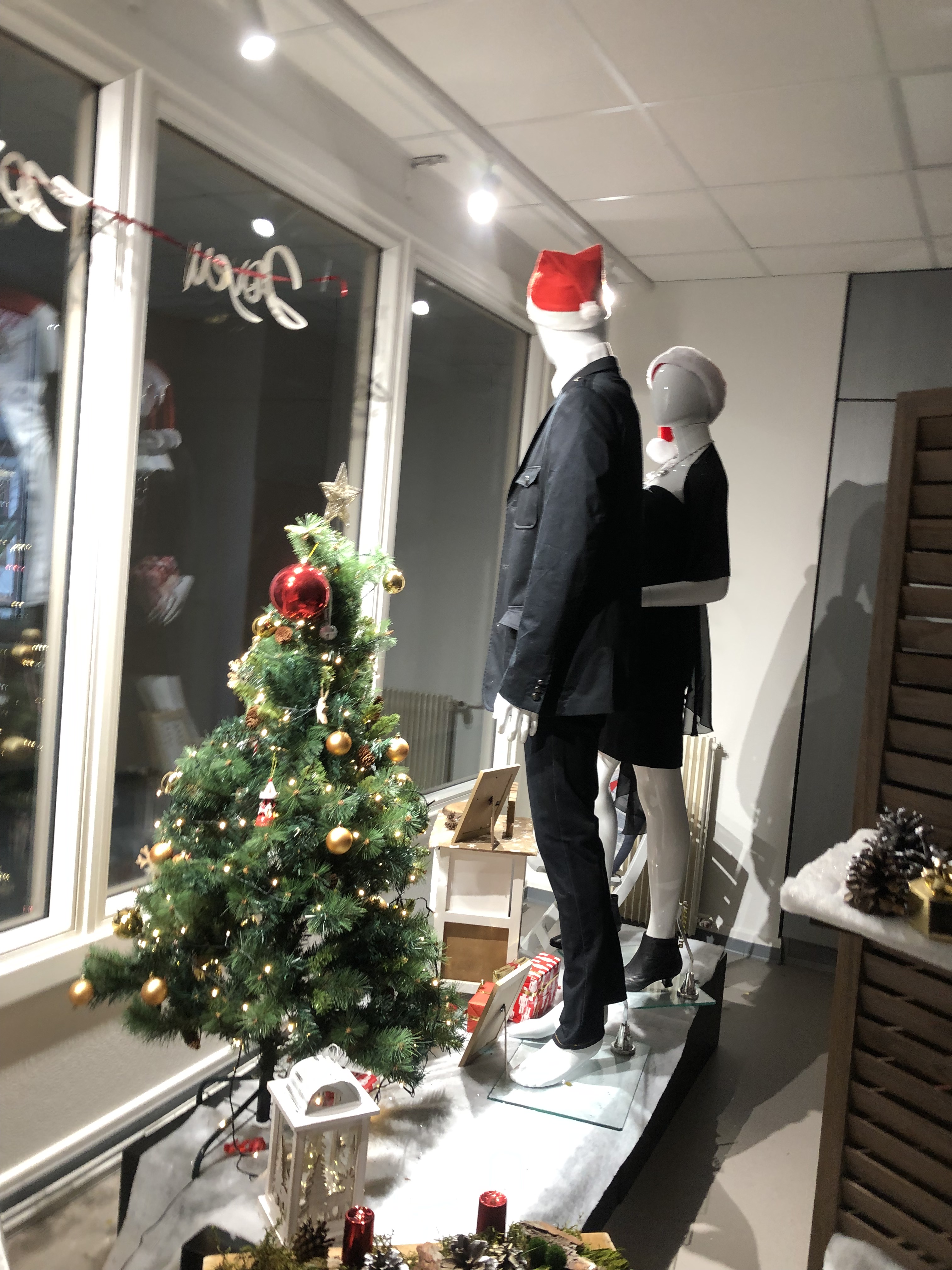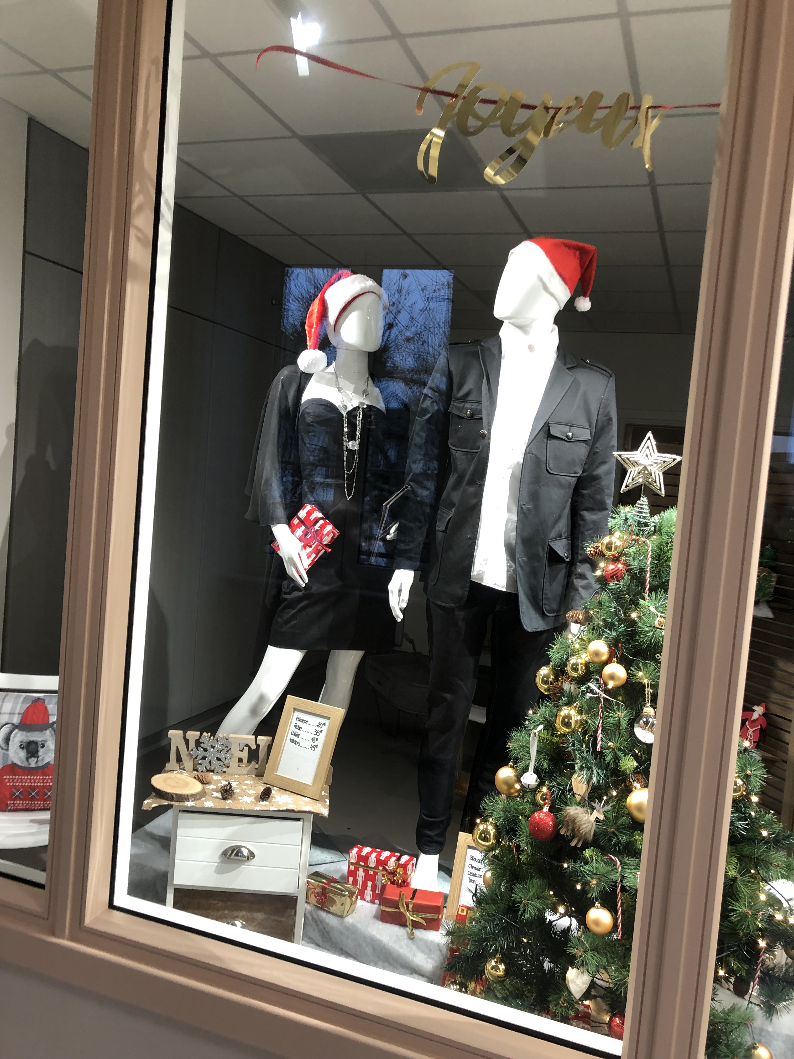 La vitrine de Noël visible dans le magasin école / Elèves de 1ère Métiers du Commerce et de la Vente Option A – 1MCV-A1