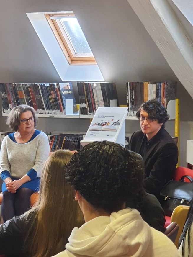 Lundi 22 mars 2023, le CDI du lycée a accueilli Nicolas Cavaillès, auteur de nouvelles et traducteur du Roumain, dans le cadre du « Jour des auteurs européens », une manifestation créée par la Commission européenne.