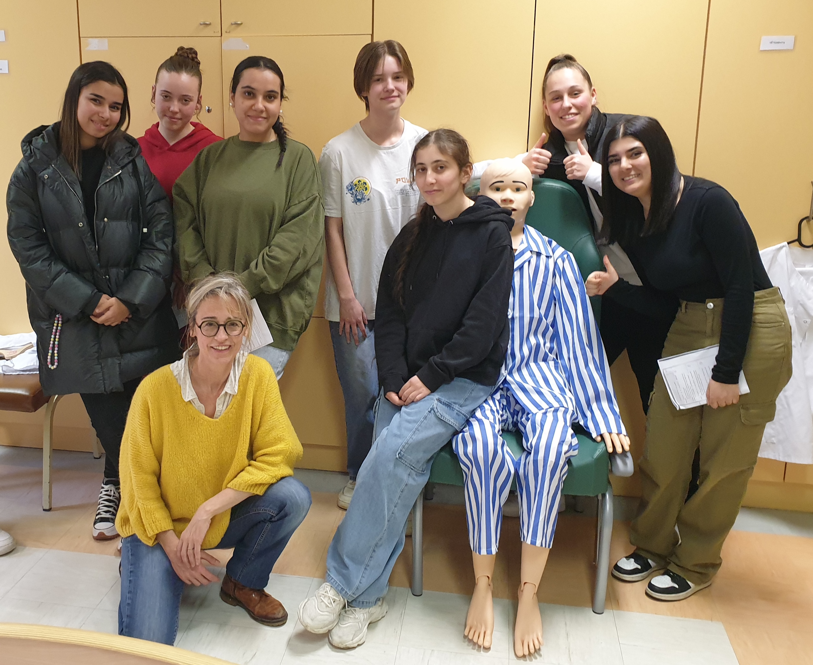 La PFMP 3 est le moment pour les élèves de première en ASSP d’effectuer leur stage en Ehpad et d’acquérir les compétences liées à la prise en charge de la personne âgée. Au retour de PFMP, en co-intervention, les élèves ont écrit leur journal, rédigé le portrait d’un soignant rencontré dans la structure et retranscrit quelques dialogues habituels, surprenants, décalés voire touchants… des « brèves d’Ehpad ».