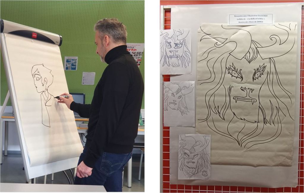 Lors de la rencontre, les lycéens ont pu échanger avec David Sala sur son parcours, son métier, les techniques qu’il utilise, ses projets ; ils ont pu voir des dessins originaux et ont réalisé un croquis.