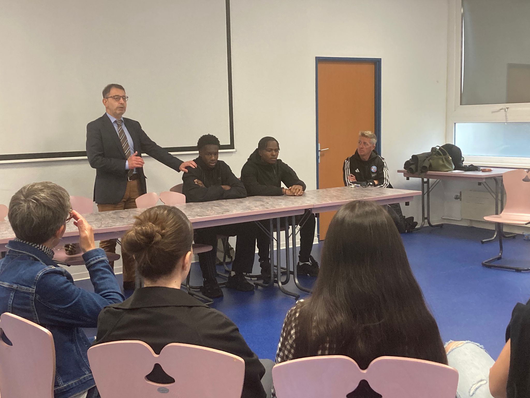 Du même âge que les élèves, les deux footballeurs ont partagé leur parcours, leurs défis et leur quotidien en tant que joueurs professionnels, tout en poursuivant leurs études. Les élèves ont été particulièrement inspirés par leur détermination, leur rigueur et leur capacité à concilier sport et scolarité.