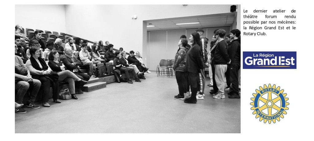 Il faut dire que le travail a été intense. Entre octobre et décembre, et ce grâce au soutien financier de la région Grand Est et du Rotary Club, les élèves ont travaillé quatre heures par semaine avec François Laflahy et toute l’équipe de la compagnie Ac-en-Ciel. Les cours de projet de M.LECCA et de Mme CRISPATZU se sont ainsi transformés pendant deux mois en un atelier de théâtre-forum où ils ont beaucoup appris. A maîtriser l’espace et à improviser d’abord. A communiquer avec le corps ensuite. A construire des histoires enfin. Tout l’objet de cet atelier était en effet de faire en sorte que les élèves soient capables de proposer, d’écrire, de mettre en scène puis de jouer des histoires qui nous interpellent et nous interrogent comme citoyens. Mais l’objectif final était surtout d’être suffisamment pertinent pour inciter les spectateurs à réfléchir et à sortir de leur passivité. Le public, formé pour l’occasion des élèves de la classe de la terminale commerce, a ainsi été invité à venir sur scène et à proposer des issues plus morales aux situations d’injustice mises en exergue par les histoires jouées sur scène.