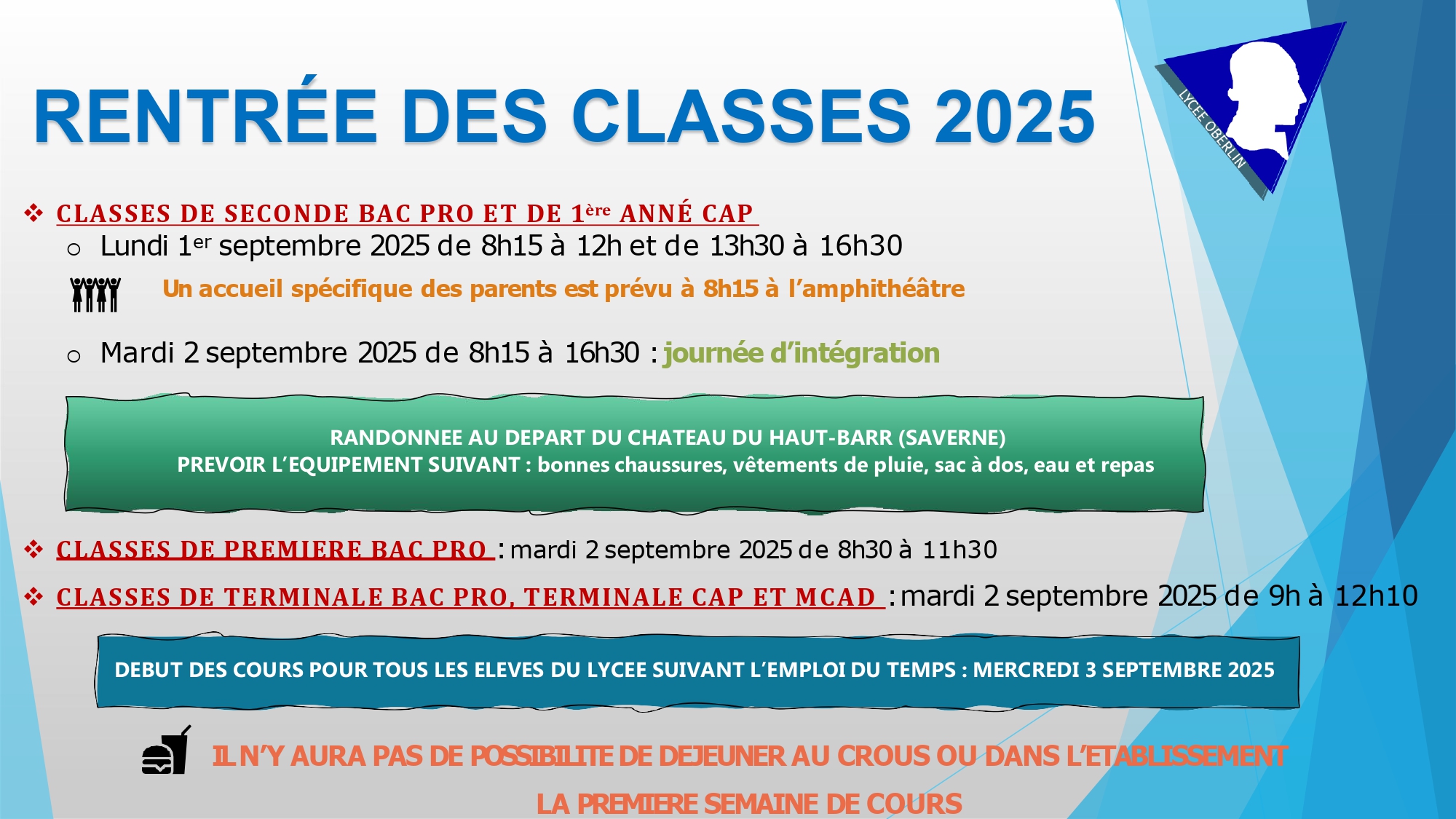 Trouvez ci-dessous les horaires et l’organisation de la rentrée de septembre 2025.