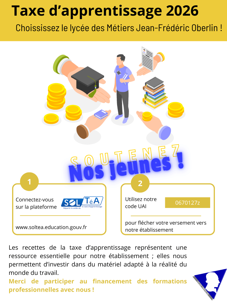 La taxe d’apprentissage constitue une source importante de financement pour que le Lycée J-F OBERLIN puisse mener à bien ses projets.